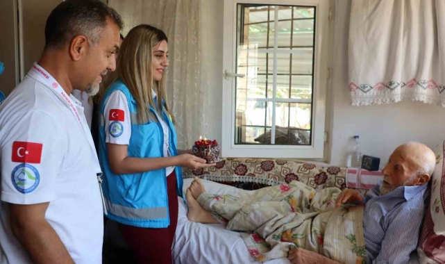 Kayseri Şehir Hastanesi Evde Sağlık Hizmetleri Birimi; bakıma muhtaç ve yatalak hastaların umudu oldu. Belirli günlerde hastaları ziyaret eden birim, hem hastaların bakımın yapıyor hem de moral veriyor. Kocasinan ilçesine bağlı Ebiç Mahallesi'nde yaşayan Duran Taştekin'in de muayenesine giden ekipler; dedenin 100 yaşına girdiğini fark etti. Pasta alarak Duran dedenin evine giden ekipler; sürpriz yaptı. 100. yaş gününde mum üfleyen Taşekin, duygusal anlar yaşadı. Kayseri Şehir Hastanesi Evde Sağlık Hizmetleri Birimi'nde görevli Doktor Ahmet Koç; "2018 yılında Kayseri Şehir Hastanesinin hizmete açılmasıyla birlikte hastamiz bünyesinde Evde Sağlık Hizmetleri Birimi olarak hizmet vermeye başladık. Bu hizmetler kapsamında bakanlığımızın belirlediği kriterlere uyan hastalarımızın takiplerini yapmaktayız. Bugün de Duran amcamıza hizmet vermek için buraya geldik. Yaklaşık 6 yıldır amcamızı belirli aralıklarla ziyaret ediyoruz. Hastalarımıza gitmeden önce de sistemden kontrollerini yapıyoruz. Bugün Duran amcamızın da doğum günü olduğunu sistemden gördük. Pasta alarak jest yapmak istedik. Kendisi 100 yaşına girdi" dedi.