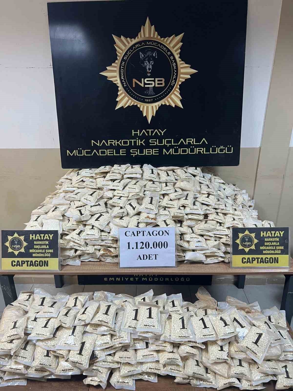 Hatay'da durdurulan 2 araçta narkotik köpekle yapılan aramada 1 milyon 120 bin adet captogan hap ele geçirildi. Olayla ilgili gözaltına alınan 3 şahıs tutuklanarak cezaevine gönderildi.