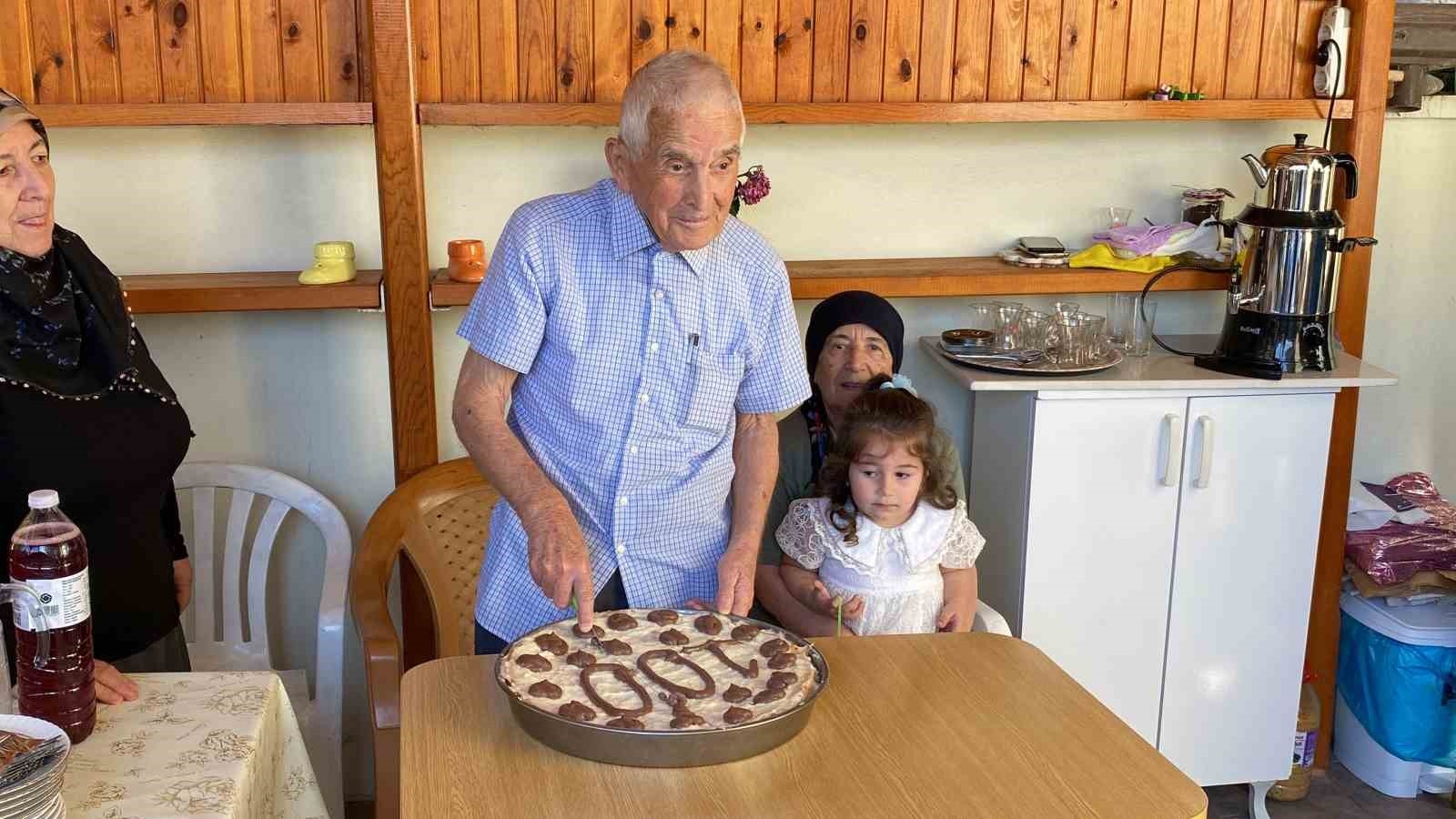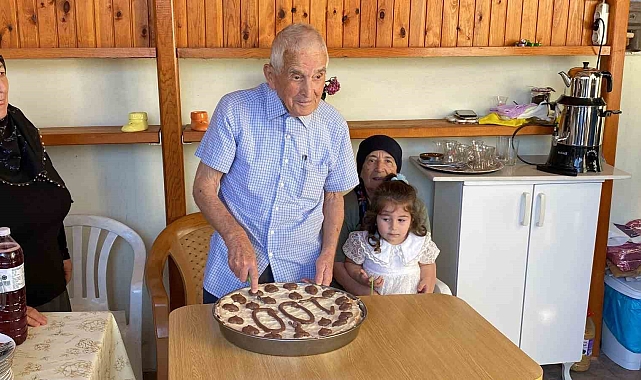 Düzce'de 100. yaşına giren Ferit Fırat'ı komşuları unutmadı. Bir asrı deviren Fırat, 100. yıl pastasını eliyle kesti.