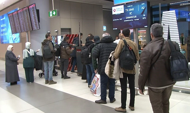 Sabah saatlerinde İstanbul Havalimanı'na gelen yüzlerce Suriyeli yolcu, uzun yıllar sonra memleketlerine dönecek olmanın heyecanını yaşadı. Uçak biniş kapısında coşkulu görüntüler yaşandı. Yolcular, ellerinde Suriye bayraklarıyla 'Başını dik tut, artık özgürsün Suriye' sloganları atarak duygularını dile getirdi.
