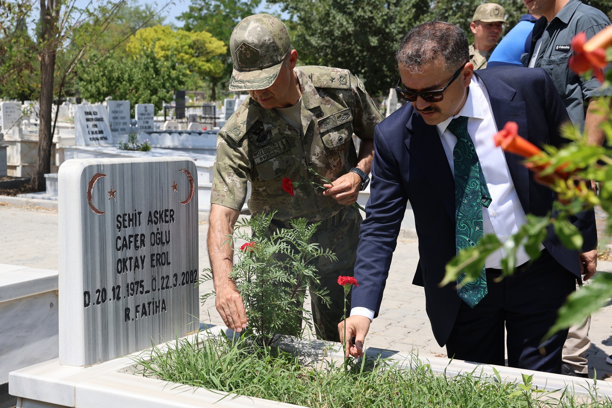 Iğdır Valisi Ercan Turan, beraberindeki il protokolü üyeleri, şehit aileleri ve gazilerle birlikte şehitlikleri ziyaret etti. Vatanları uğruna canlarını feda eden kahramanlarımızın kabirleri başında dualar okundu, onların aziz hatıraları bir kez daha yâd edildi.