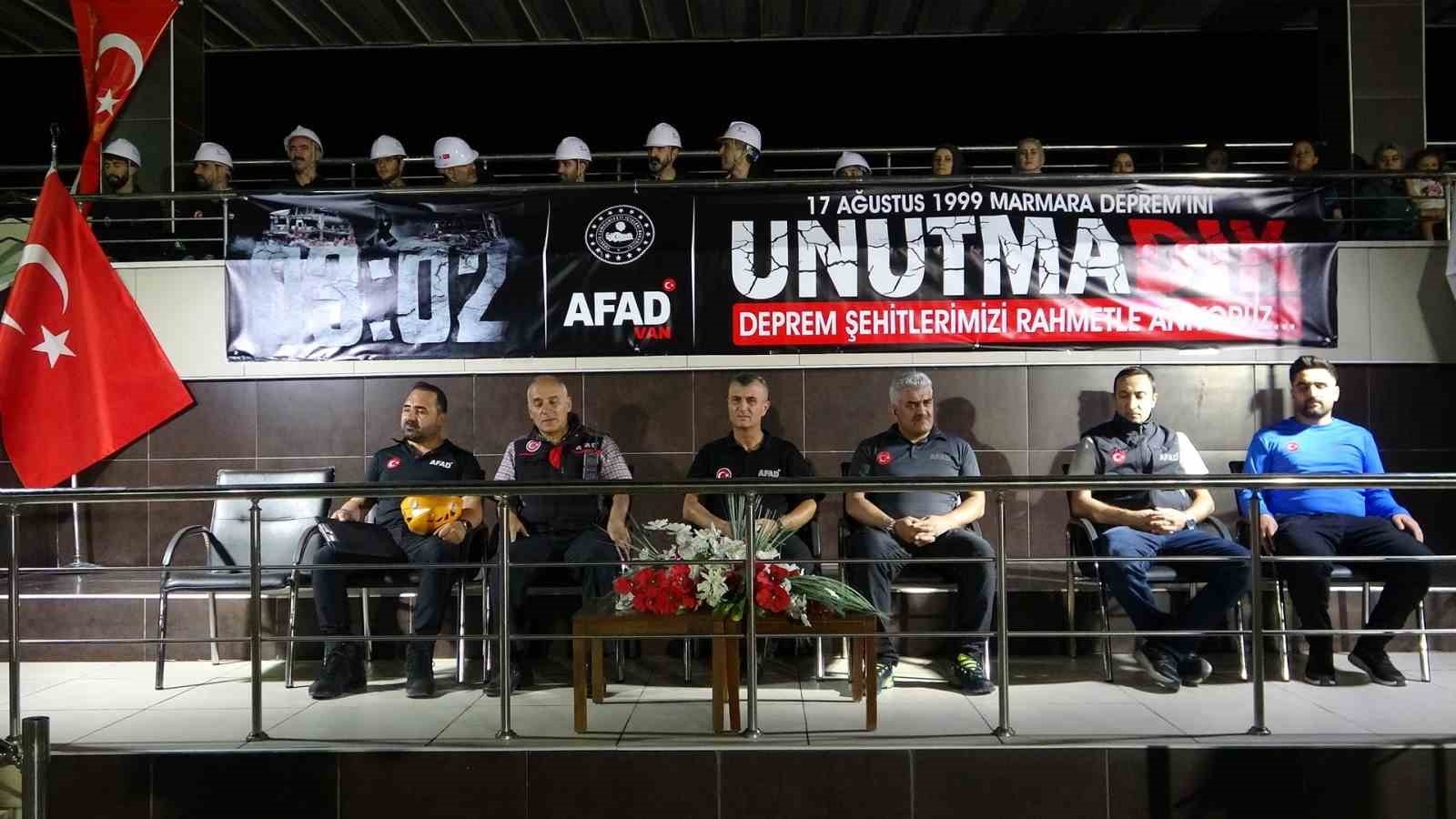Tatbikat sonrasında bir açıklamada bulunan AFAD İl Müdür Vekili Taner Eltutan, 1999 yılında Türkiye'deki afetlerin en büyüğünün Gölcük'te yaşandığını ifade ederek, bu depremin nüfus yoğunluğunun en yüksek olduğu bölgelerden biri olan Marmara'da yaşanması nedeniyle milyonlarca insanın dolaylı ya da doğrudan etkilendiğini söyledi. Van AFAD olarak 1999'da meydana gelen deprem anısına bir tatbikat gerçekleştirdiklerini belirten Eltutan, "Tatbikatı yaparken; afet yönetiminin vazgeçilmez parçalarından olan sivil toplum kuruluşu ile AFAD gönüllülerini de dahil ederek, gece saatlerinde yapmayı planladık. Temennimiz ülkemizde bir daha böyle afetlerin yaşanmamasıdır. Ama maalesef 1999 yılından günümüze kadar geçen 25 yıllık süre zarfında biri de ilimizde olmak üzere çok sayıda deprem yaşadık. Bu depremlerde çok sayıda vatandaşımız hayatını kaybetti. Can ve mal kayıpları yaşadık. Bizde hem devlet tedbirleri hem de AFAD teşkilatımızın çalışmalarıyla özellikle afet öncesine odaklanarak, afetlerde ve depremlerden sonra vatandaşlarımızın can ve mal kaybını en aza indirmek için faaliyetler, tatbikatlar düzenlemekteyiz" dedi.