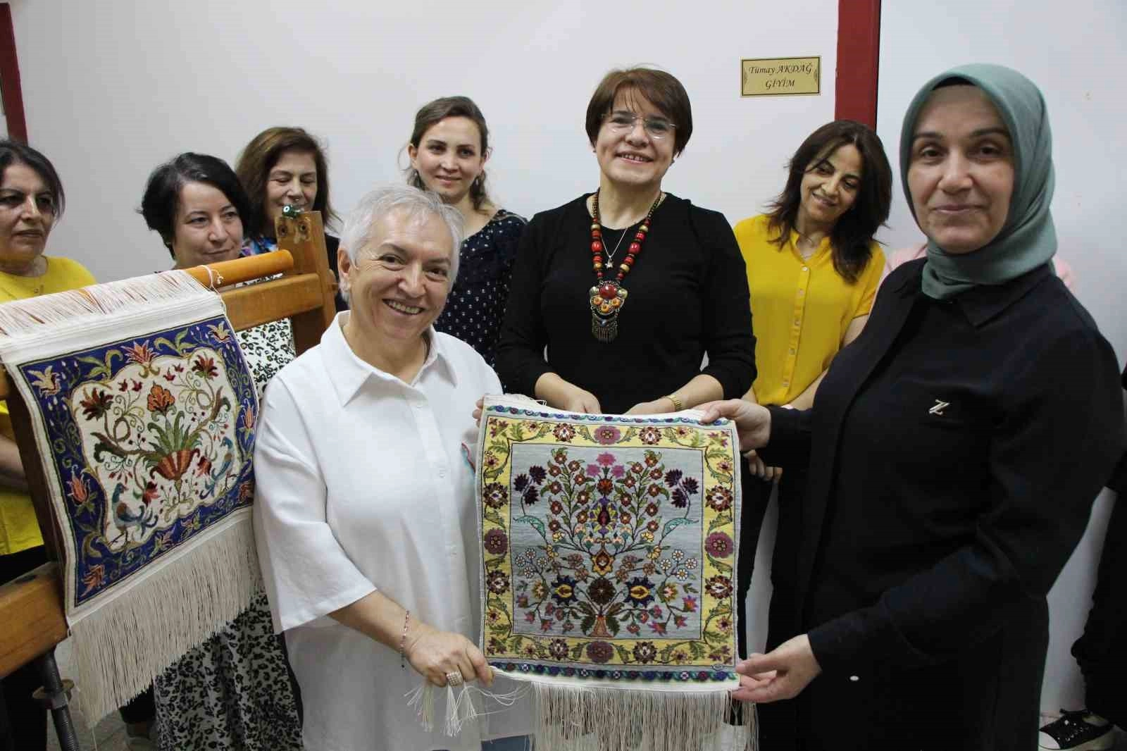 Çiçek ve canlı motiflerinden esinlenerek halılarını dokuyan memur emeklisi Müzeyyen Ulavur, "İpek halının değeri maalesef bilinmiyor. Tanesini 100 bin liradan aşağı satmam. Biri beş aylık emek. Asgari ücretten hesaplandığında 100 bin lira tutuyor" dedi.