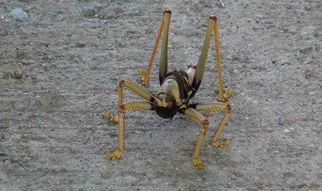 Batman'ın Gercüş ilçesinde görülen etçil dev çekirge vatandaşları şaşırttı. Gercüş Çukur Çeşme Mahallesinde bir tarlada yaklaşık 25 santim uzunluğundaki dev etçil çekirgeyi gören çiftçiler, çekirgeyi görüntülemeye başladı.