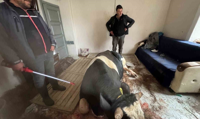 Komşular hızla bir araya gelerek salonda sıkışan hayvanı çıkarabilmek için yoğun çaba harcadı. Girdiği yerden dikkatlice çıkarılan tosun, daha sonra kamyona yüklendi ve kesime götürüldü. Olay sırasında kimsenin yaralanmaması büyük bir teselli oldu.