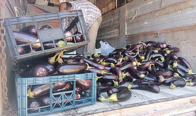 Zonguldak'ın Ereğli ilçesinde Ziraat Odası Başkanı Zafer Yalman, üretim fazlası yaklaşık 5 ton patlıcanı ilçe merkezinde halka bedava dağıttı.