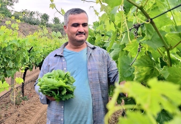 Manisa'nın Sarıgöl ilçesinde üzüm bağlarından toplanan taze bağ yaprakları birçok ailenin vazgeçilmez gelir kaynaklarından biri haline geldi.