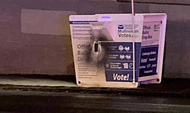 Pazartesi günü Oregon'a bağlı Portland kentinde 2 sandığın ve Washington'a bağlı Vancouver kentinde bir sandığın kundaklandığı kaydedilen açıklamada, Portland'daki sandıktaki alevlerin sandık içindeki bir yangın söndürme sistemi ve yakındaki bir güvenlik görevlisinin müdahalesi sayesinde hızla söndürüldüğü belirtildi. Portland'da olay yerinden ayrılan "şüpheli bir araç" tespit edildiği ifade edilirken, sandıklarda bulunan cihazlardan elde edilen kanıtların yangınların bağlantılı olduğunu gösterdiği kaydedildi. Portland'daki olayda yalnızca 3 oy pusulasının yandığı, ancak Vancouver'daki bir sandıkta yüzlerce oy pusulasının yandığı bildirildi.