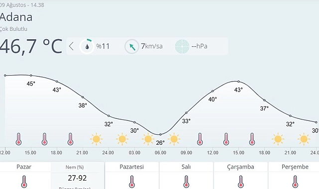Adana'da bir önceki rekor, 13 Ağustos 2023 tarihinde 45.7 derece ile kaydedilmişti. Ancak bugün ölçülen 46.7 derecelik sıcaklık, bu rekoru geride bırakarak şehirde son yüzyılın en sıcak ağustos günü olarak kayıtlara geçti. Yetkililer, aşırı sıcakların önümüzdeki günlerde de etkisini sürdürmesinin beklendiğini belirtti.