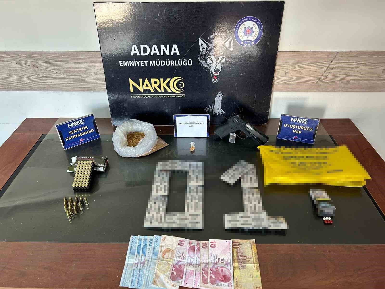 Adana Emniyet Müdürlüğü Narkotik Suçlarla Mücadele Şube Müdürlüğü ekipleri, 21-27 Temmuz arasında uyuşturucu satıcılarına yönelik yaptığı çalışmalarda 25 kişiyi yakaladı. Şüphelilerin ikametlerinde ve araçlarında yapılan aramalarda 516 gram esrar, 16 bin 232 adet uyuşturucu hap, 1 kilo 728 gram bonzai, 50 gram bonzai hammaddesi, 1 kilo 898 gram metamfetamin, 66 kök hint keneviri ile 5 adet ruhsatsız tabanca ele geçirdi.
