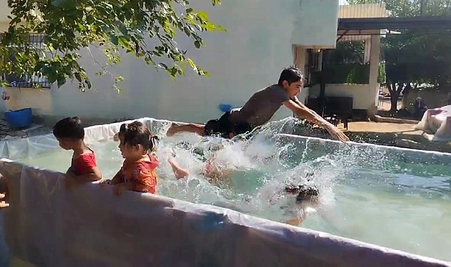 Adana'nın Yumurtalık ilçesinde yaşayan bir baba, aşırı sıcaklar ve ısınan deniz suyu nedeniyle çocuklarına traktör römorkunda havuz yaptı. Çocuklar, bu yaratıcı çözüm sayesinde gün boyu serinleme imkanı buldu.