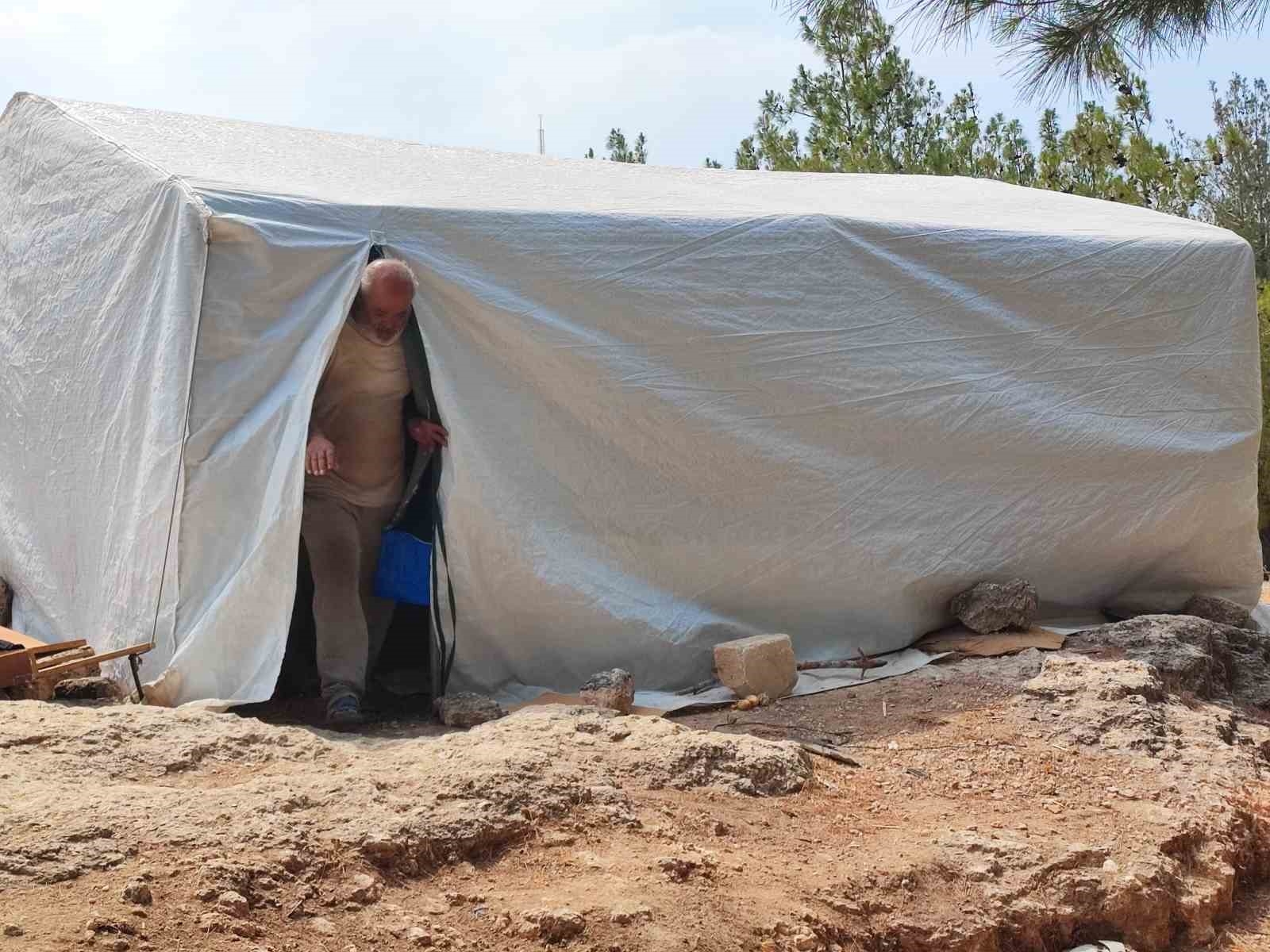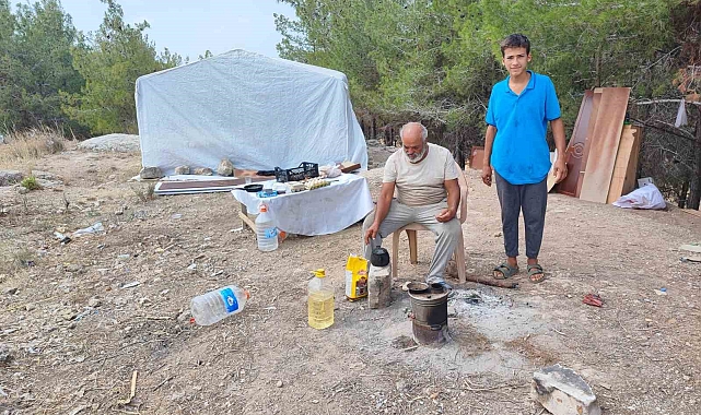 Bayram Güzeloğlu, "Ev sahibine aylık düzenli olarak 5 bin lira kiramı ödüyordum. Bir gün gelip evi sattığını söyleyip, evden çıkmamı istedi. Ben de gidecek yerim olmadığını söyleyince daha ay dolmadan beni sokağa attı. Çocukla birlikte çadır alıp, ormanlık alana çadır kurup, burada yaşamaya başladık. Hava çok sıcak, burada yaşamak çok zor oluyor ama mecbur kaldık" dedi.