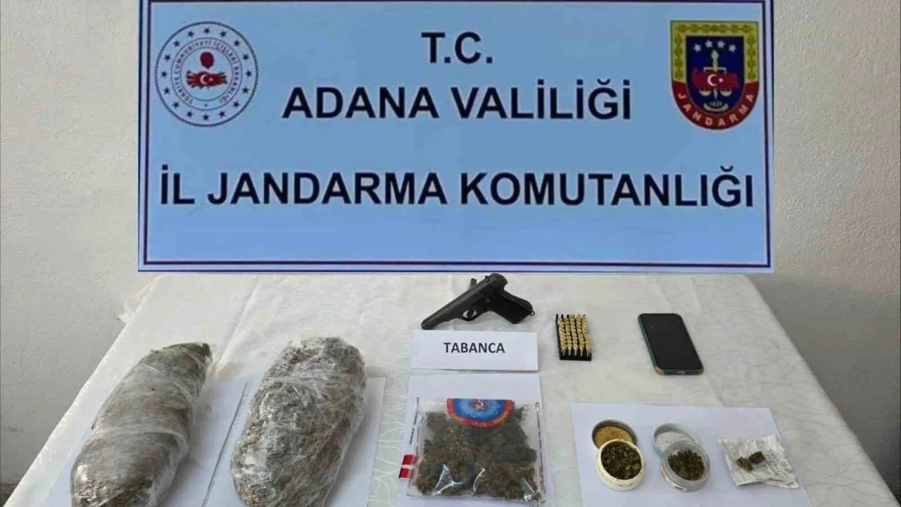 Adana'nın Yumurtalık ilçesinde jandarma ekipleri tarafından bir eve düzenlenen operasyonda, 1 kilogram esrar ve bir adet ruhsatsız tabanca ele geçirildi.
