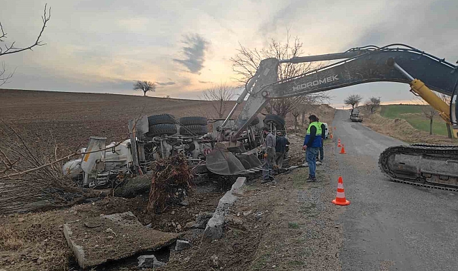 Edinilen bilgilere göre, henüz belirlenemeyen bir nedenle sürücüsünün direksiyon hakimiyetini kaybeden beton mikseri, yoldan çıkarak derin bir şarampole yuvarlandı. Kazanın şiddetiyle araçta sıkışan sürücü, çevredekilerin yardımıyla araçtan çıkarıldı. İlk müdahalesi olay yerinde yapılan sürücünün sağlık durumunun iyi olduğu öğrenildi.
