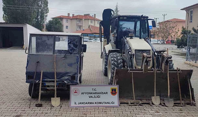 Afyonkarahisar'ın Şuhut ilçesinde, "kepçe" diye tabir edilen iş makinesiyle kaçak kazı yaparak define arayan iki şahıs, jandarma ekipleri tarafından suçüstü yakalandı.
