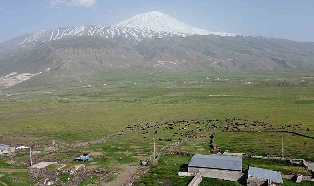 Küçükbaş hayvancılığın önemli merkezlerinden biri olan Doğu'nun Çukurova'sı Iğdır'da hayvanlar merada besleniyor. Iğdır'a bağlı sınırda ve Ağrı Dağı eteklerinde yer alan Karagüney köyü ve çevre köylerdeki bulunan küçükbaş hayvanlar da ilkbaharın sonlarına kadar bu meralarda beslenecek. Küçükbaş hayvanlar, yavruları ile meralarda beslenirken bu anlar havadan görüntülendi.