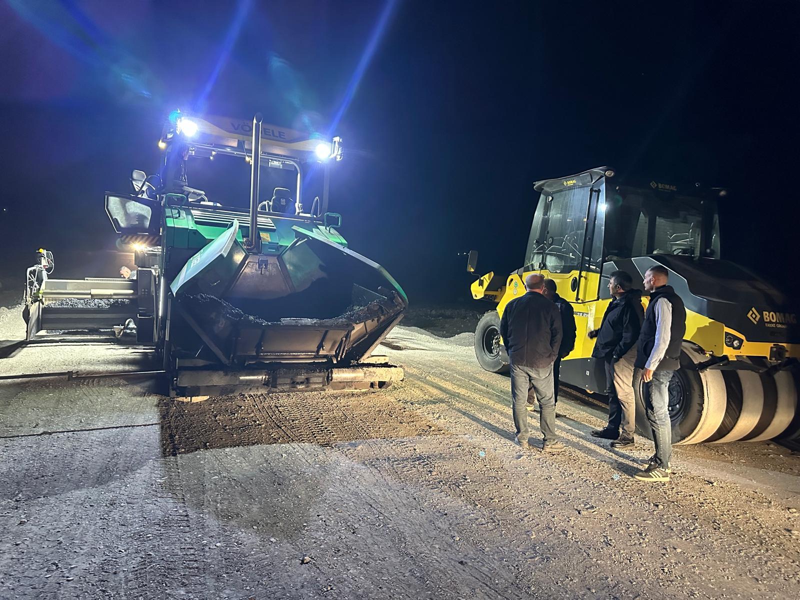 Iğdır İl Özel İdaresi ekipleri, asfalt çalışmalarını gece geç saatlere kadar yoğun bir şekilde sürdürüyor.
