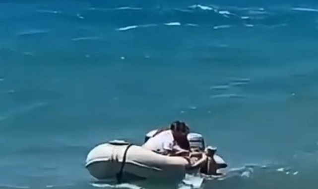 Kuşadası Güzelçamlı'da serinlemek için denize giren bir kadın akıntıya kapılıp açığa sürüklenince boğulma tehlikesi yaşadı. Genç kadının boğulmakta olduğunu gören çevredeki gençler hemen zodyak bot ile kadına ulaşarak kurtardı. Sahilde çaresizce olayı izleyenler, kadını kurtaran 2 gence alkışla destek verdi.