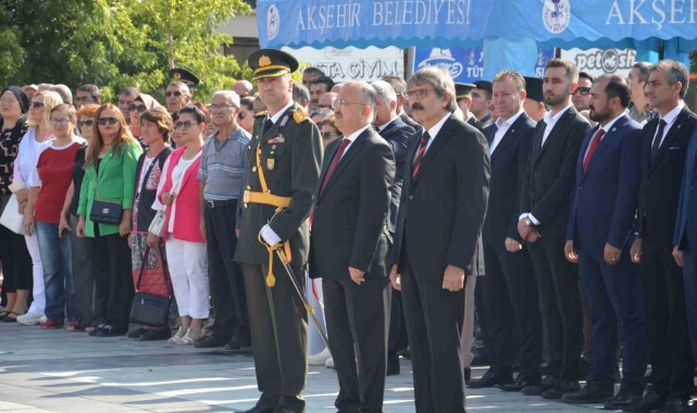 30 Ağustos Zafer Bayramı kutlama törenleri kapsamında Cumhuriyet Meydanı'nda Akşehir Kaymakamı Mehmet Özel, Garnizon Komutanı Albay Sakin Kutsal, Akşehir Belediye Başkan Yardımcısı Cevat Nuri Bozoğlu tarafından; Atatürk Anıtına çelenkler koyuldu, saygı duruşunda bulunuldu ve İstiklal Marşı okundu. Kaymakam, Garnizon Komutanı ve Belediye Başkanı Yardımcısının alanda bulunan protokolün ve vatandaşların bayramını kutlamasının ardından günün anlam ve önemini belirten konuşma yapıldı. Akşehir Tornacı Erol Cumbul Mesleki Teknik Anadolu Lisesi öğrencilerinden Samet Alay'ın 'Milli Mücadele Destanı' ve Şehit Selçuk Özer Anadolu Lisesi öğrencilerinden Rabia Peker'in '30 Ağustos' isimli şiirlerini okumalarının ardından program geçit töreni ile sona erdi.