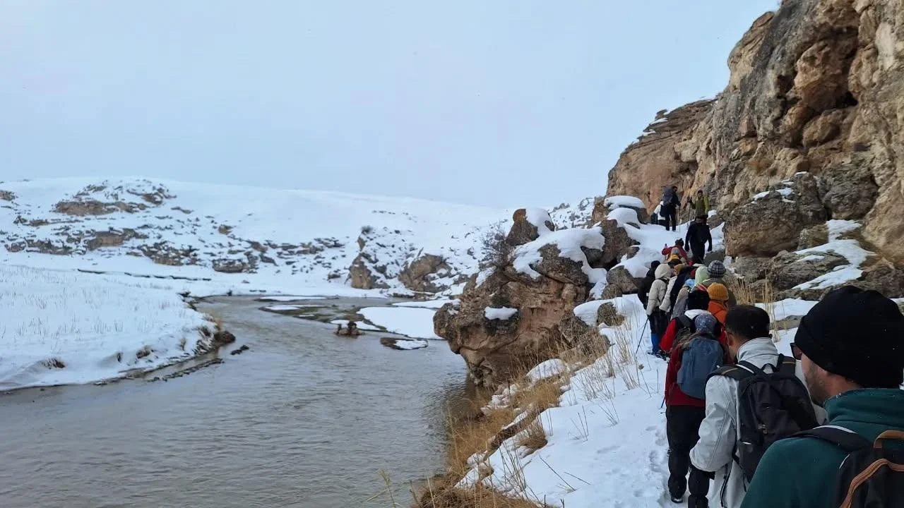 İskender Iğdır Ağrı Dağı Dağcılık ve Doğa Sporları Kulübü (AKUD), bölgenin en görkemli doğa harikalarından biri olan Diyadin Kanyonları’nda 11 kilometrelik bir kış yürüyüşüne imza attı.