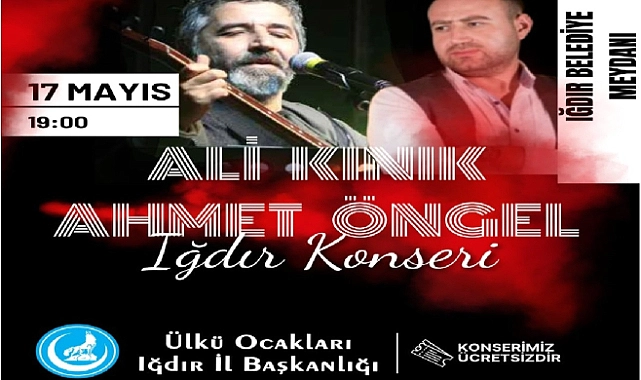 Ülkü Ocakları Iğdır İl Başkanlığı’nın organizasyonuyla, sevilen sanatçılar Ali Kınık ve Ahmet Öngel Iğdır’da sahne alacak.