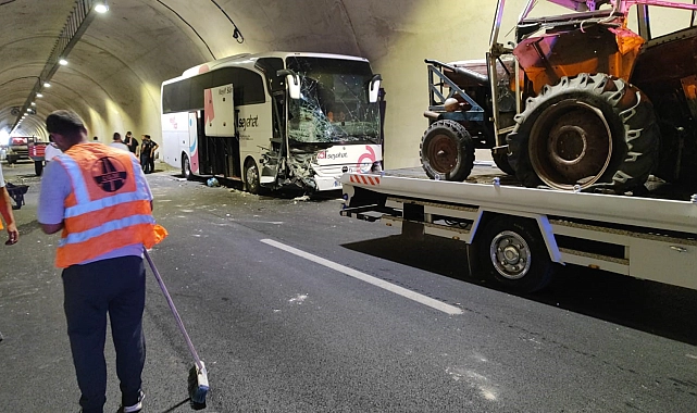 Amasya'da, Amasya-Turhal kara yolu üzerindeki Şehit Ahmet Özsoy Tüneli'nde yolcu otobüsü ile traktörün çarpışması sonucu 1 kişi yaralandı.