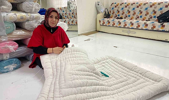 Yozgat'ın Sorgun ilçesinde yaşayan Gülsüm İncekara, annesinden öğrendiği yorgancılığı, kendi iş yerini kurarak devam ettiriyor.
