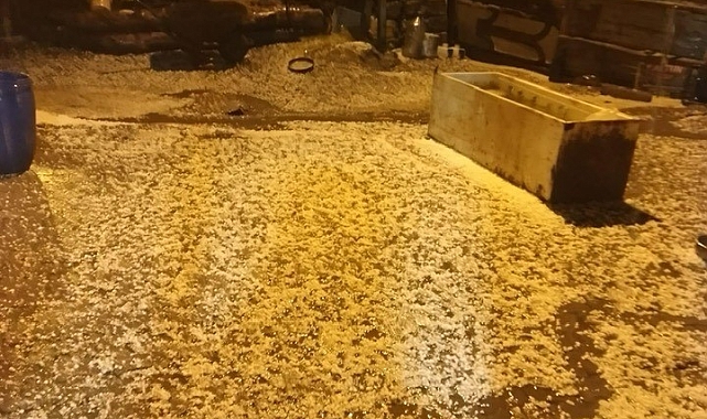 Ardahan'ın Hanak ilçesinde etkili olan dolu ve sağanak, sele neden oldu.