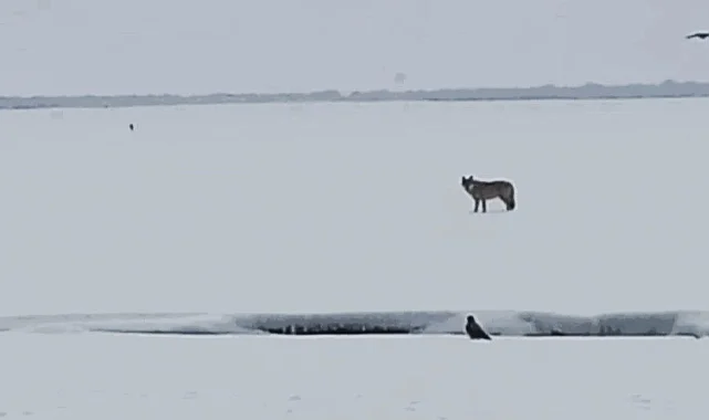 Ardahan Ovası'nda çekilen görüntülerde, açlıktan zor durumda olan bir kurt, karla kaplı alanda leş yerken görüntülendi. Kurt, bir süre beslendikten sonra karla kaplı ovanın içlerine doğru ilerleyerek gözden kayboldu.