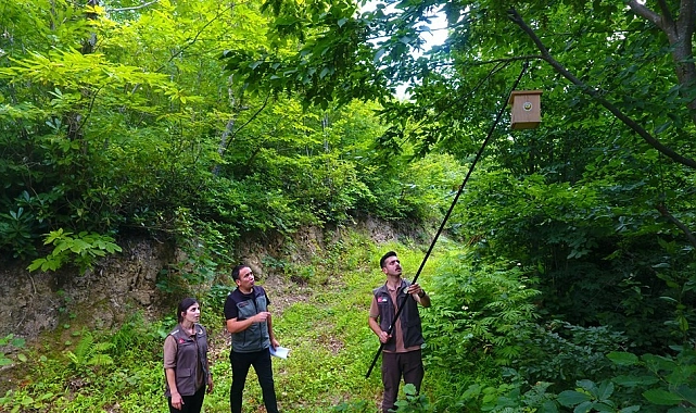 Artvin Orman Bölge Müdürlüğü, ormanlarda zararlı böceklerle biyolojik mücadele kapsamında kuş popülasyonunu arttırarak zararlı böceklerin tüketimini sağlamak amacıyla ormanlara bin adet kuş yuvası astı.