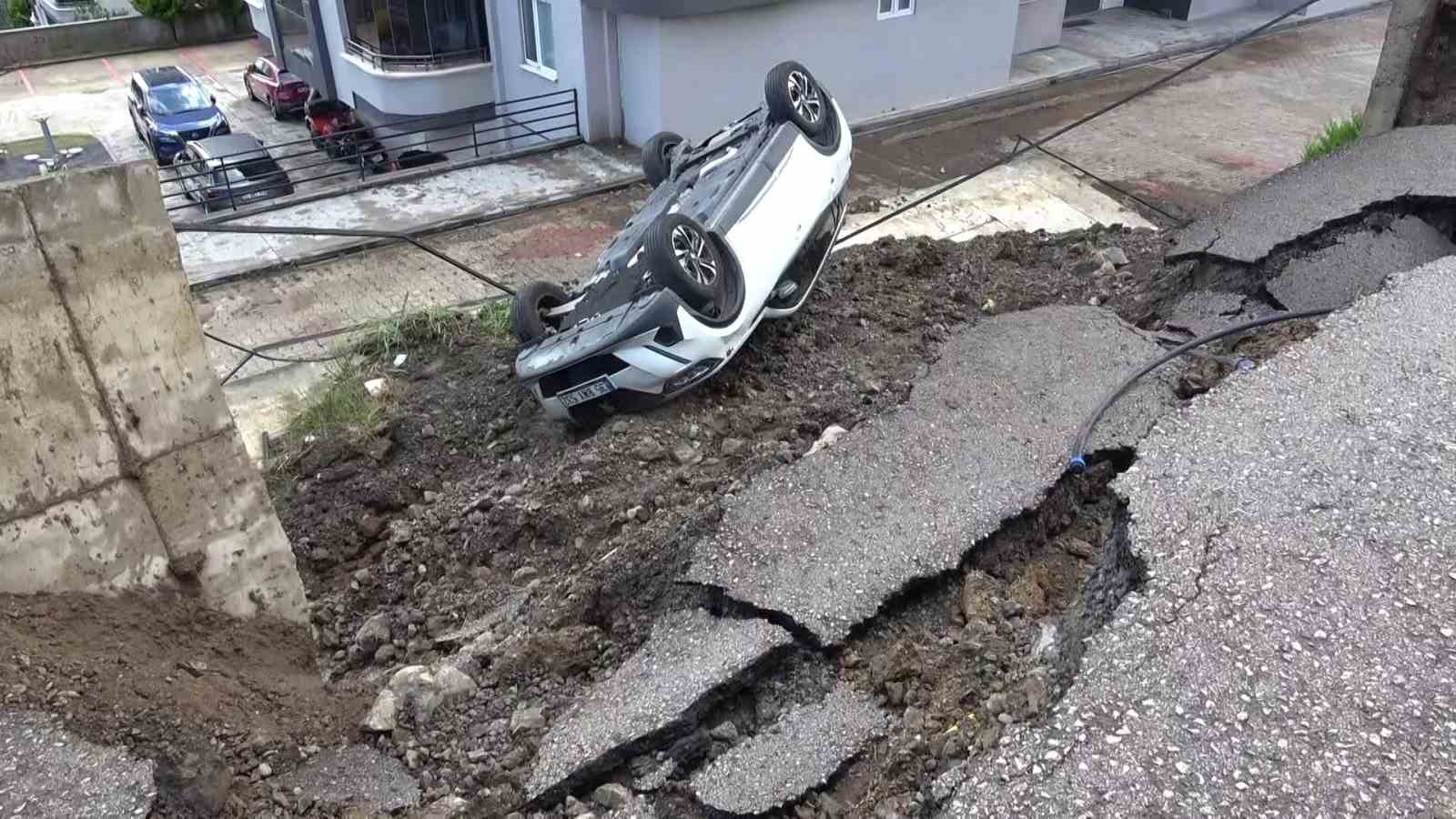 Sabah saatlerinde ortaya çıkan manzara, site sakinlerini büyük endişeye sevk etti. Araçlar tamamen kullanılamaz hale gelirken, çöken yol ve duvar nedeniyle ciddi maddi hasar oluştu.