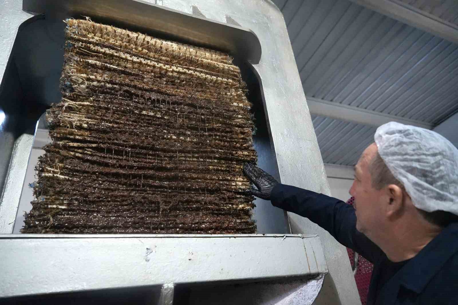 Taş baskı zeytinyağı üretim sürecini anlatan Mustafa Kürlek, "Taş baskı zeytinyağı en kaliteli zeytinyağlardan biri. Bu yağımız granit taşlarda ezildiği için zeytinler kendine has meyve aromasına sahip. Bunun yanında kahvaltılarda, salatalarda daha çok kullanılıyor. Granit taşlarda ezilen zeytinler akabinde çuvalların içerisinde yerleştirilerek tam bir zeytin hamuru oluşuyor. Bu hamur da pres vasıtasıyla çuvalların arasında sıkılıyor ve akabinde çıkan yağ da hakiki sızma zeytinyağı oluyor" diye konuştu.