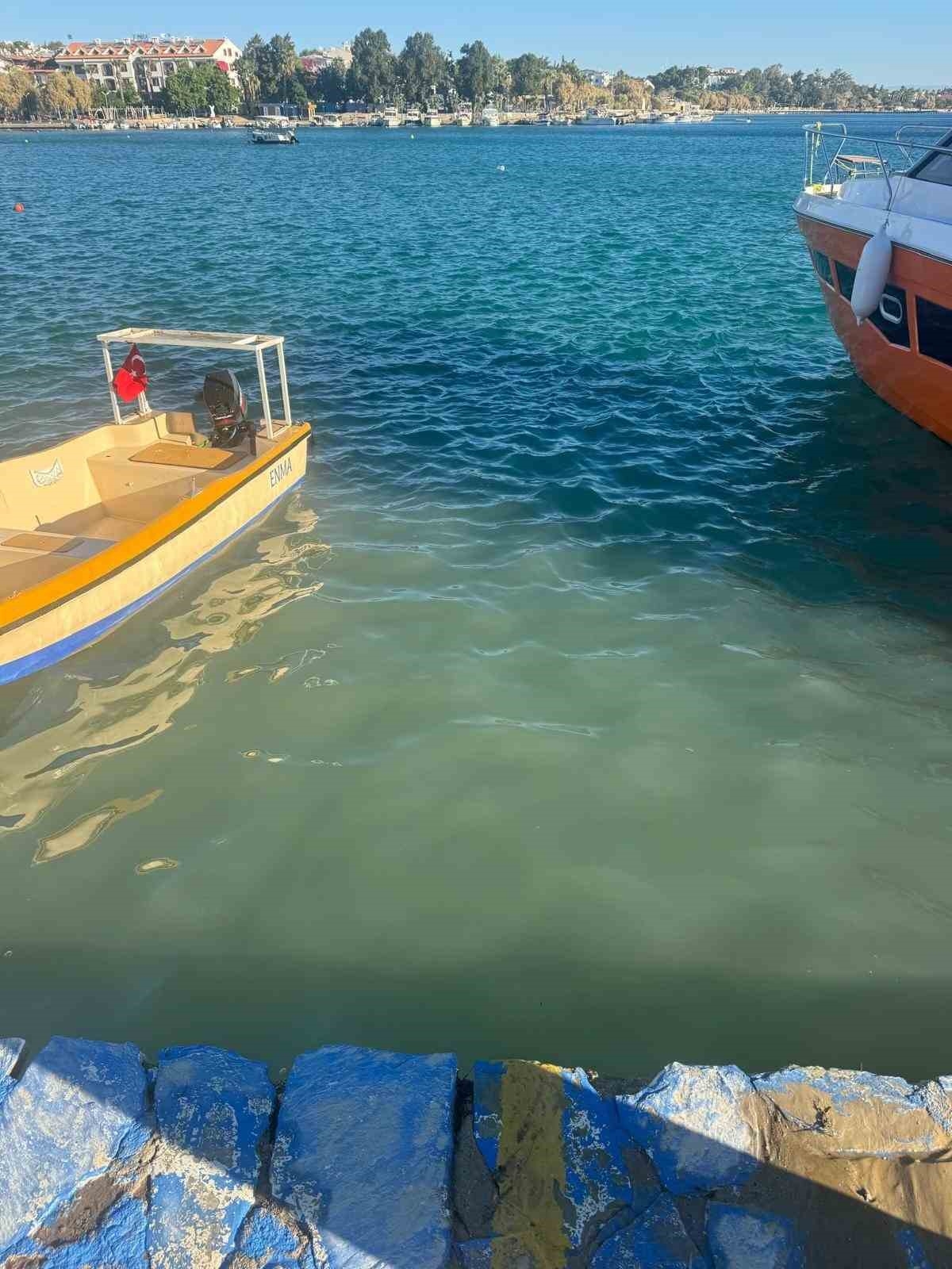Muğla'nın Datça ilçesinde Atıksu Terfi İstasyonu'nda patlayan borudan akan sular denize ulaşırken denizin rengi değişti.
