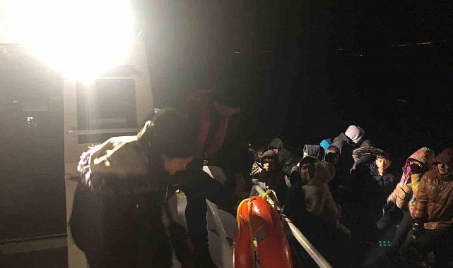 Ekipler, hareket halindeki lastik botu durdurarak içerisindeki 44 kaçak göçmeni yakaladı. Yakalanan göçmenlerin 24'ünün çocuk olduğu belirlendi.