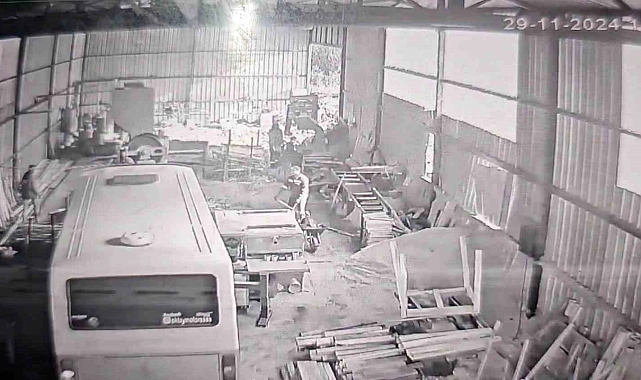 Edinilen bilgiye göre, olay, ilçeye bağlı Ortacı köyünde yaşandı. İddialara göre, 28 yaşındaki O.Ç., aralarında önceye dayalı husumet bulunan babası M.Ç.'nin çalıştığı ahşap atölyesine minibüsle daldı. İşyerinde çalışan 6 kişi minibüsün altında kalmaktan kaçarak kurtuldu. Makineleri ve istiflenen ahşap malzemeleri minibüsle deviren O.Ç., yaşananların ardından olay yerinden ayrıldı. Olay anı ise işyerine ait güvenlik kamerasına yansıdı.
