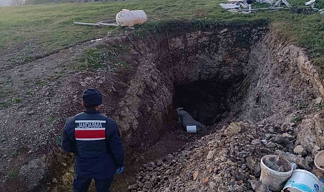 Samsun'da bağ evinin bahçesinde yapılan kaçak kazı, jandarma tarafından ortaya çıkartıldı.
