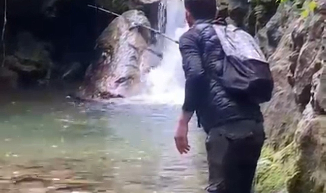 Rize'de derede balık tutmaya çalışan vatandaş ayı ile karşılaşınca neye uğradığını şaşırdı.