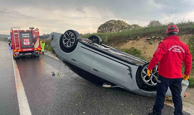 Balıkesir'de İzmir-İstanbul otobanının Soğucak mevkisinde meydana gelen trafik kazasında 4 kişi yaralandı. Yağış nedeniyle kayganlaşan yolda sürücüsünün kontrolünden çıkan 35 DLN 37 plakalı otomobil, savrularak takla attı.