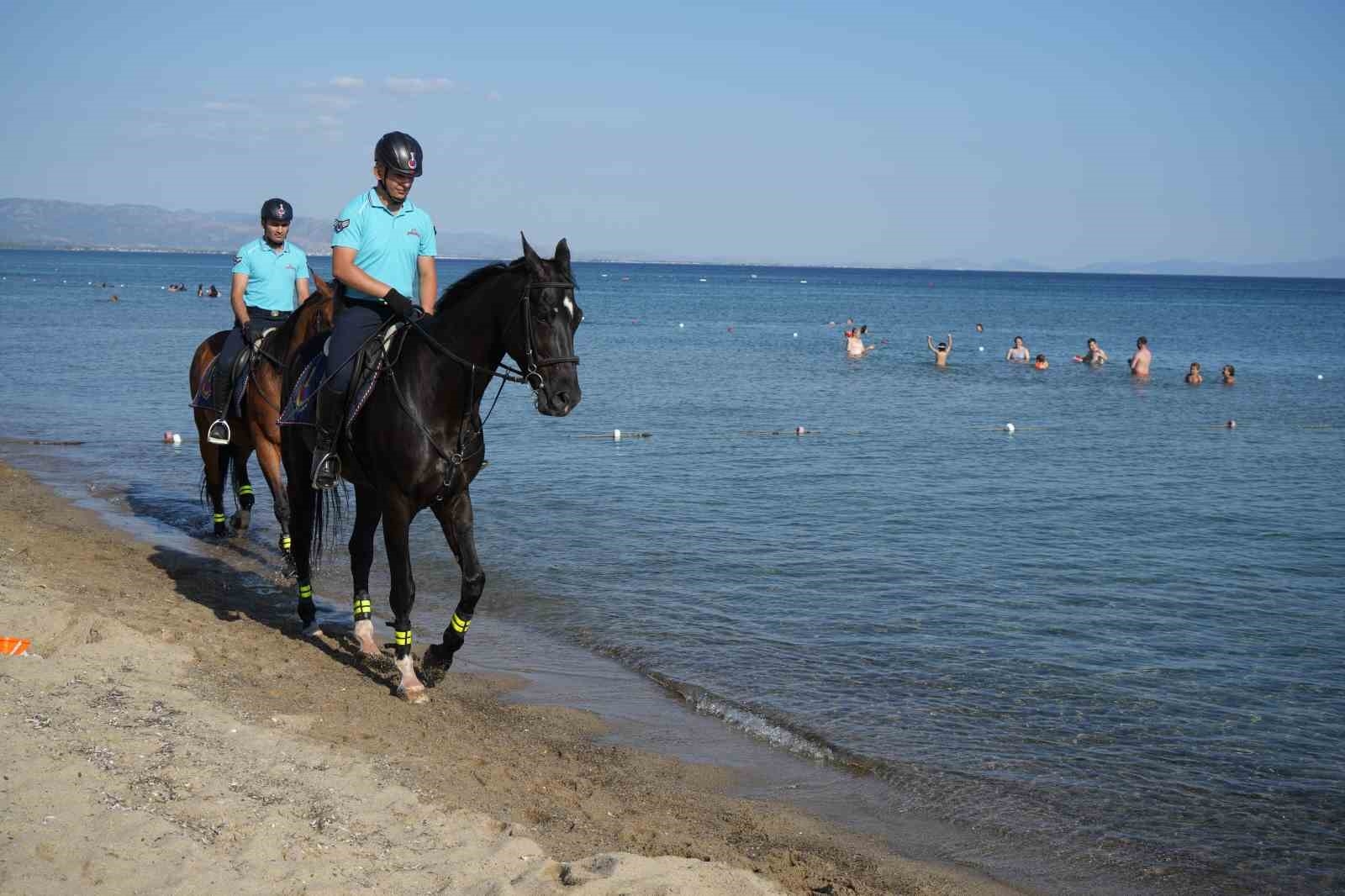 Ayvalık'ta görevlendirilen 3 at ve 5 personelden oluşan atlı jandarma birliği ile sahil bölgesi, plajlar ile ormanlık alanlarda meydana gelebilecek muhtemel yangınları önlemek, düzensiz göçle mücadele etmek amacıyla devriye görevini yürütüyor.