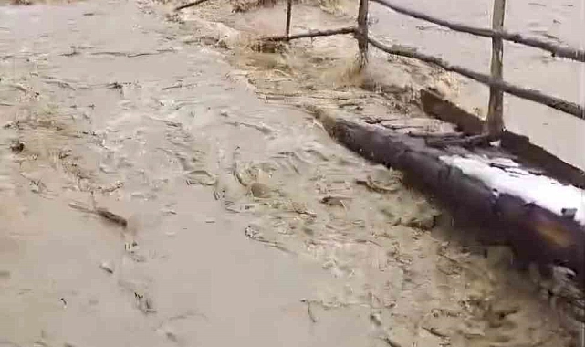 Bartın'ın Ulus ilçesine bağlı Akyaş köyünde günlerdir süren yoğun kar ve yağmur yağışı sonrası dere taştı. Derme çatma ahşap köprünün yıkılması sonucu 3 evin köyle olan ulaşımı kesildi.