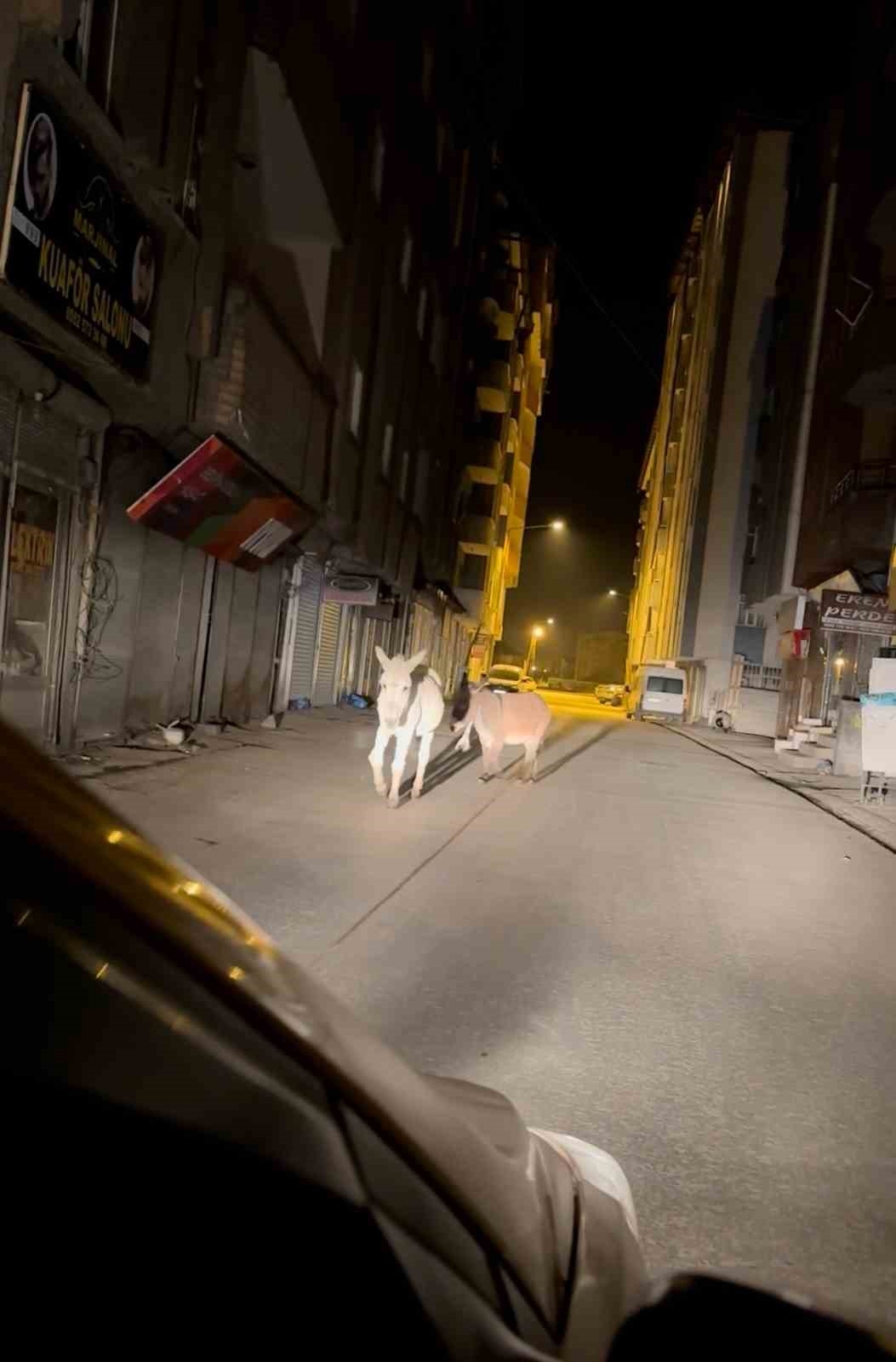 İpek Mahallesi'ne yolcu götüren Hazım Aksın isimli taksi şoförü, seyir halinde olduğu sırada, 2 eşek yoluna çıktı. Başıboş eşekleri gören Aksın, o anları cep telefonuyla kayıt altına aldı.
