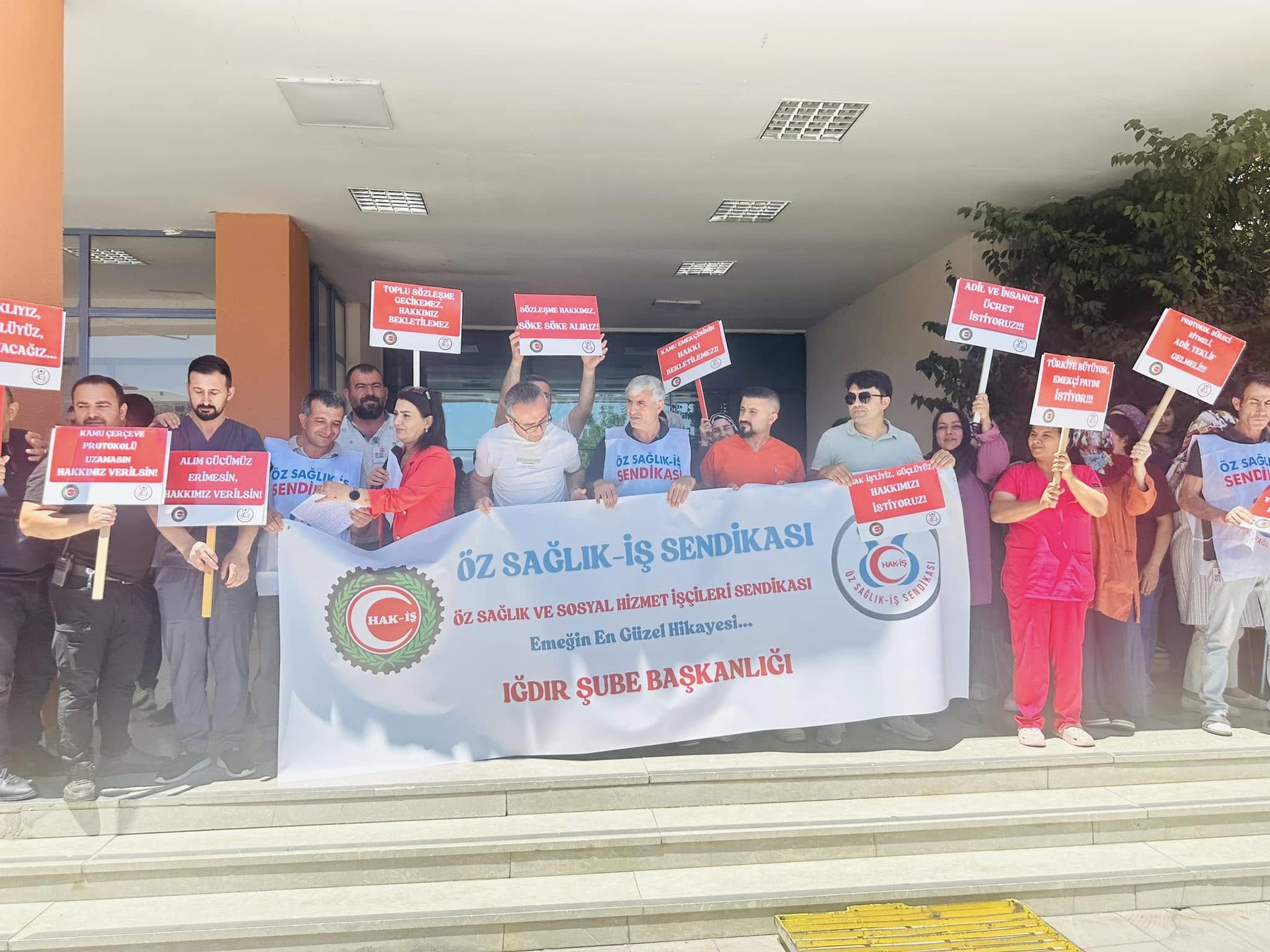 Hak-İş Öz Sağlık-İş Sendikası Iğdır Şube Başkanı Gülü Tuncer, aylardır süren Kamu Çerçeve Protokolü görüşmelerinde TÜHİS'in sunduğu teklife sert tepki gösterdi. Tuncer, Dr. Nevruz Erez Iğdır Devlet Hastanesi önünde yaptığı basın açıklamasında, emeğin karşılığı olan bir sonuç beklerken, sunulan %16'lık teklifin hayal kırıklığı yarattığını belirtti.