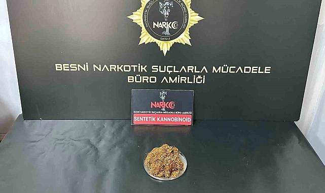 Edinilen bilgilere göre, Besni İlçe Emniyet Müdürlüğü Narkotik Suçlarla Mücadele Büro Amirliği ekipleri tarafından durumundan şüphelenilen O.K., ve E.Y., isimli şahıslar durdurularak arandı. Yapılan aramalarda şahısların üzerinden 14,42 gram sentetik kannabinoid maddesi ele geçirildi. Gözaltına alınan her iki şahıs, gözaltına alındı. Şahıslar ifadeleri almak üzere polis merkezine götürüldü.