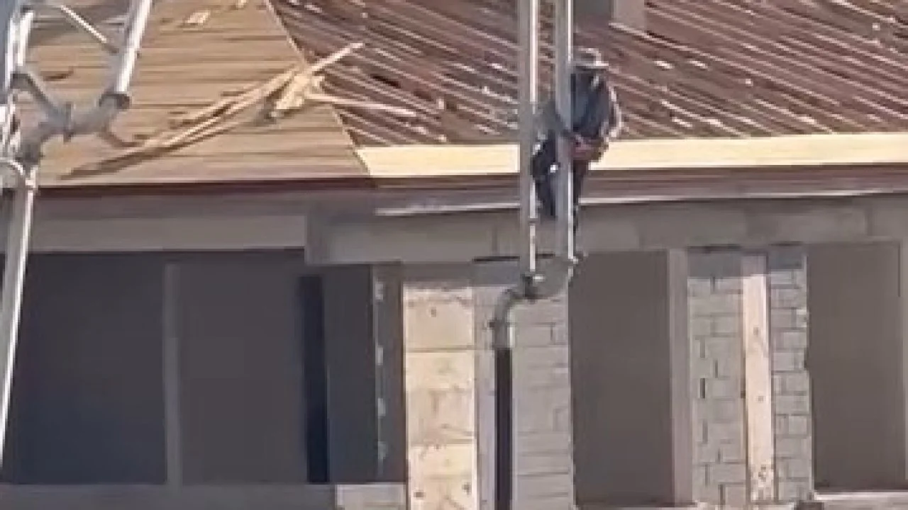 Elazığ’da beton pompasını adeta asansör gibi kullanan ve 6 katlı binanın üzerine çıkıp inen işçi, canını hiçe saydı. O anlar cep telefonu kamerasına yansıdı.