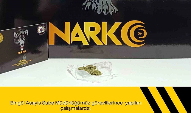 Bingöl İl Emniyet Müdürlüğü Asayiş Şube Müdürlüğü ekiplerinin yürüttüğü çalışmalar neticesinde, 3.22 gram kubar esrar maddesi ve sigara sarma kağıdı ele geçirildi. Olayla ilgili 2 şüpheli gözaltına alınırken, şahıslar hakkında adli işlem başlatıldı.