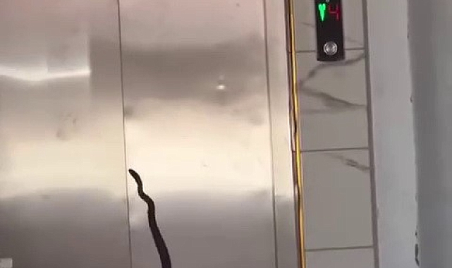 Adıyaman'da, bir binanın asansörüne girmeye çalışarak korkuya neden olan yılan itfaiye ekiplerince yakalandı.