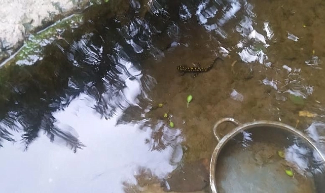 Bitlis'in Yükseliş Mahallesi'nde nesli tükenmekte olan benekli Anadolu semenderi görüntülendi.