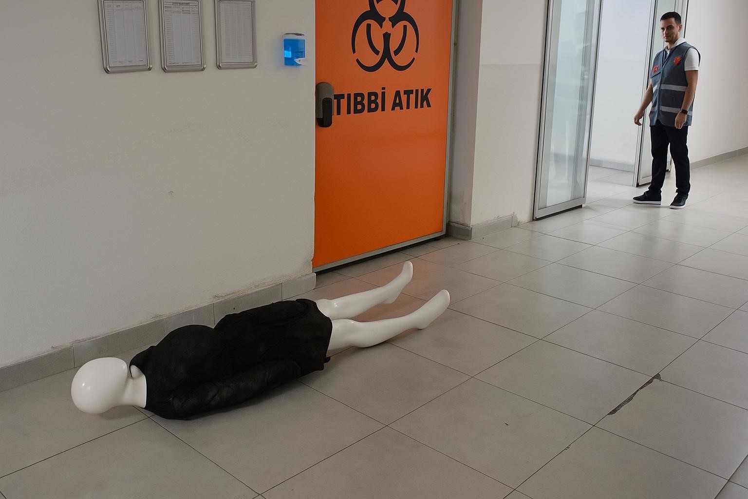 Tatbikat saneryosunda hastanede Tıbbi Atık Ünitesi'nde çalışan bir personelin kimyasal bir maddeye maruz kaldığı ve baygın halde bulunduğu ihbarı üzerine, hızlıca harekete geçildi. Hastane Afet Planı (HAP) çerçevesinde değerlendirmesinin ardından, olay yeri güvenlik altına alınarak olay yönetim ekibi toplandı yolcu. Risk durumu değerlendirilmesi sonrası, olayın ciddiyeti göz önünde bulundurularak MOR Kod verilerek hazırlık aşaması başlatıldı. Yapılan analizler sonucunda, olayın kimyasal bir tehlike taşıdığı belirlenmiş ve Turuncu Kod verilerek bölgesel ve kurumsal alarm seviyesine geçirildi.