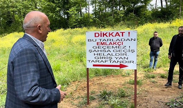Kendisine ait tarlanın yol olarak kullanılmasına izin vermeyen Yücel Özdemir, tarlanın girişine "Buradan emlakçı geçemez, şahsa helaldir" tabelası dikti.