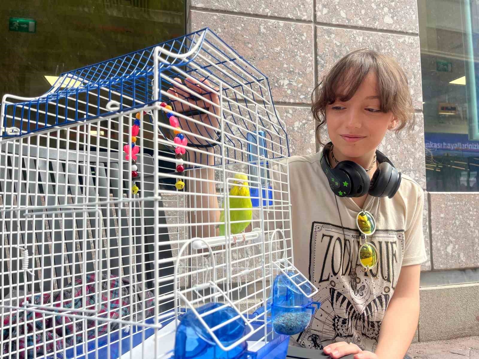 "Sabah derse gidiyorduk, tesadüfen hiç kullanmadığımız bir yolu kullanıyorduk ve bir anda önümüze düştü böyle. Zaten rengi çok açıktı ve direkt gördük o yüzden. Hemen ben yakaladım ve hani etrafa bakındık, belki arayan biri vardır diye. Hatta birkaç kişiye sorduk, kimse cevap vermedi yani sahibi değildi. Ben gittim kafes aldım ve bakmaya karar verdim. İlgilendim o gün, biraz baktım yani yem falan verdim. Sonra arkadaşlarla karar verdik hani poster yapalım hani sahibini bulalım diye. Üzüldük çünkü sahibine. Bulduğumuz bölgeye ve biraz da dışına yerleştirmeye çalıştık. Arkadaşlarımızla harçlıklarımızı birleştirip poster de yapmaya karar verdik. 30'ar tane ve sokaklara astık. Geri dönüş çok oldu yani gerçekten kuşların aynısı vardı sonunda ama çoğu ya erkekti, ya başka renkleri vardı farklı yerlerde. Bir adam aradı hatta 'sahibi çıkmazsa ben sahiplenmek istiyorum' demişti. Gerçekten fotoğraf atıyorlar, çok benziyor gerçekten kuşlarına ama kayıp olma zamanları tutmuyor maalesef. Bazıları bir yıl önce kaydedilmiş oluyor, bazıları geçen hafta kaybetmiş oluyor. Bir aydır benle birlikte, kafes aldım kuş için, yem aldım, salıncak aldım sıkılmasın diye. Açıkçası aramızda bağ oldu vermeyi istemiyorum. Ben çok seviyorum hayvanları, kuşları özellikle. Zaten eğitimli hani, ele geliyor, konuşmuyor ama hani bakıyor seninle ilgileniyor, dans ediyor, çok tatlı böyle. Ama sahibi bulunursa üzülmem, sahibi için sevinirim. Apartta kalan bir arkadaşım var. Ona veriyorum, o bakıyor benim için. Ben ziyaret ediyorum onu sürekli zaten. Bakmış oluyorum ona da. Bazen görüntülü arıyor arkadaşım. Böyle dans ediyor sesimi duyunca çok tatlı oluyor."